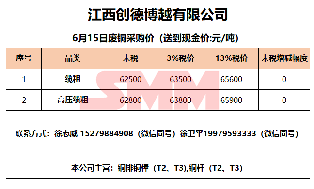 6月15日江西创德博越 废铜采购报价