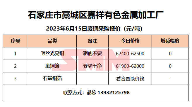 6月15日嘉祥有色金属 废铜采购报价