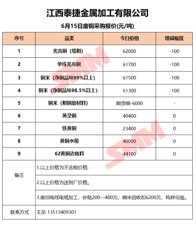6月15日江西泰捷 废铜采购报价
