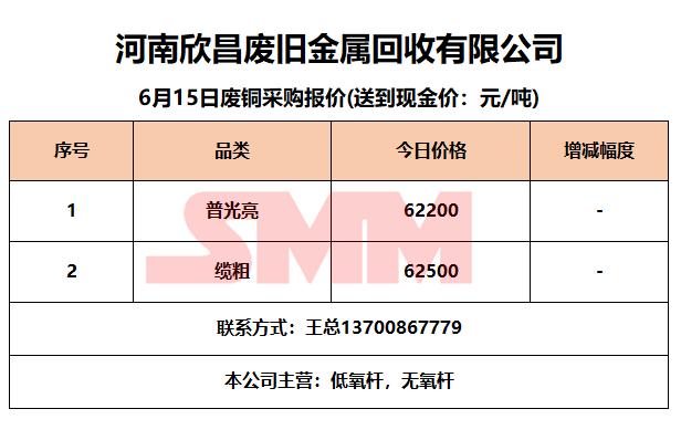 6月15日河南欣昌 废铜采购报价