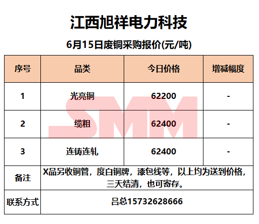 今日江西旭祥,废铜采购报价已更新,有货的朋友欢迎联系我们!