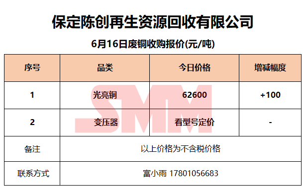 6月16日保定陈创 废金属收购报价