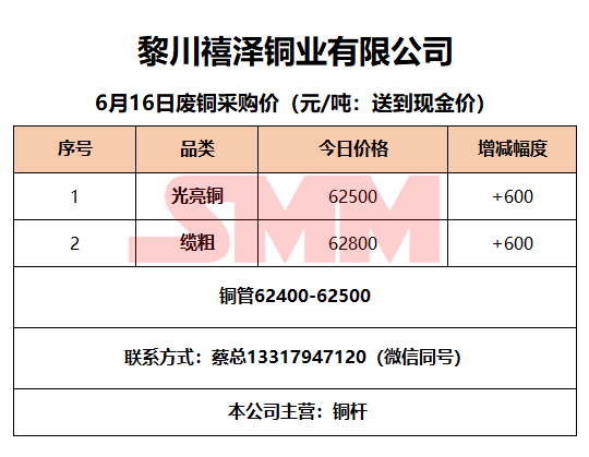 6月16日黎川禧泽铜业 废铜采购报价