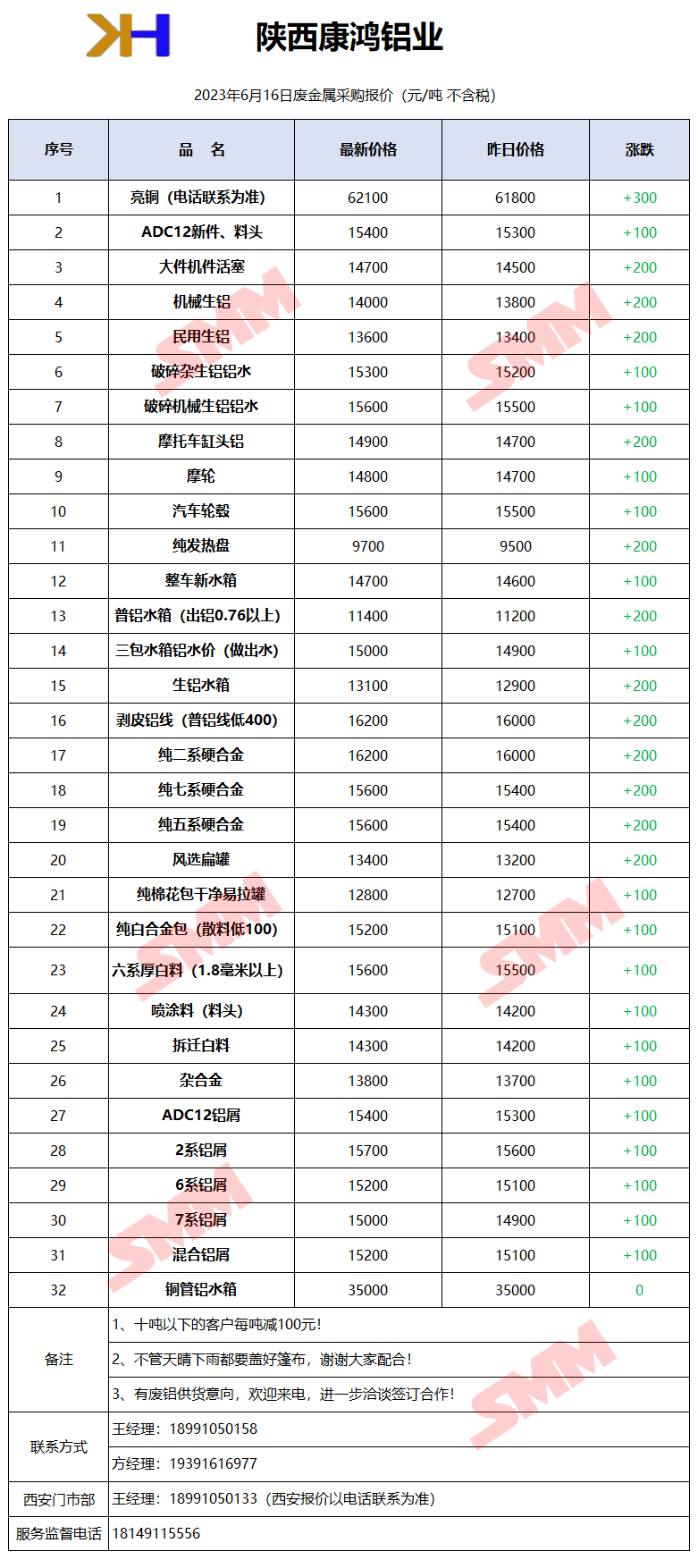 6月16日陕西康鸿 废金属采购报价