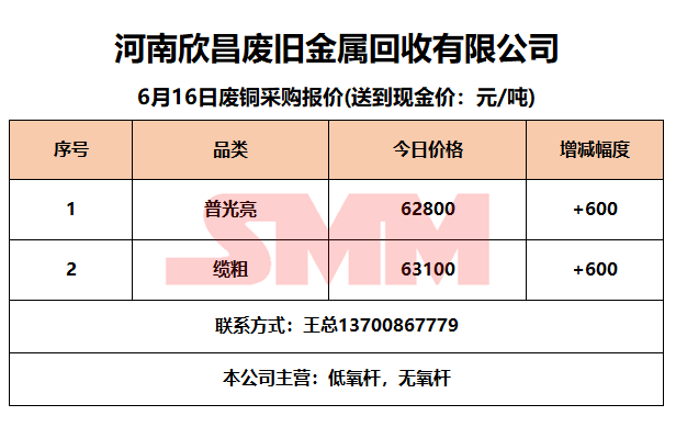 6月16日河南欣昌 废铜采购报价
