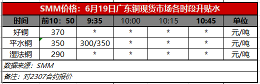 6月19日广东铜现货市场各时段升贴水(第一时段9:35)【SMM价格】