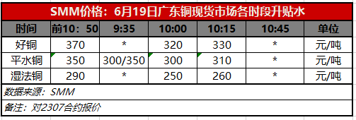6月19日广东铜现货市场各时段升贴水(第三时段10:15)【SMM价格】