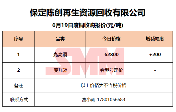 6月19日保定陈创 废金属收购报价