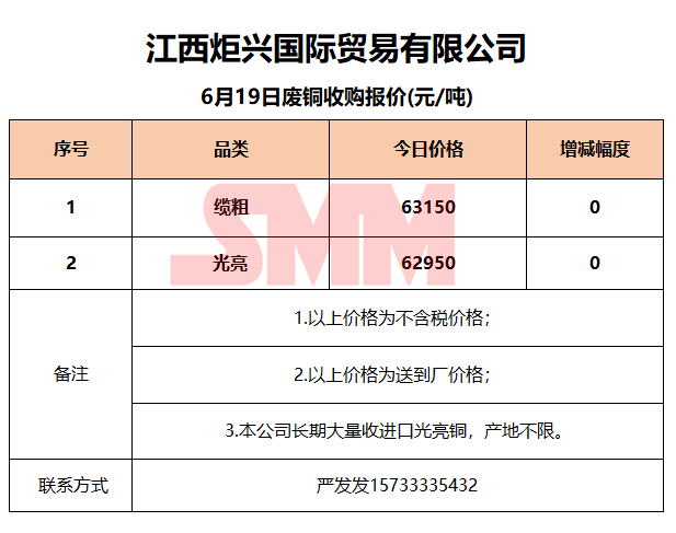 今日江西炬兴,废铜收购报价已更新,有货的朋友欢迎联系我们!