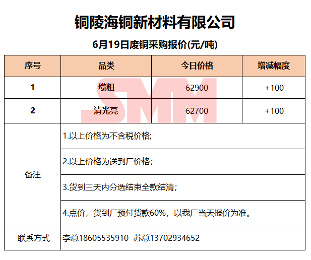 今日铜陵海铜,废铜采购报价已更新,有货的朋友欢迎联系我们!