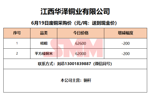 6月19日江西华泽铜业 废铜采购报价