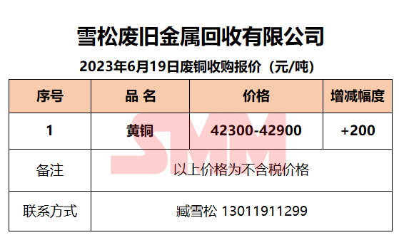 6月19日雪松废旧 废铜收购报价