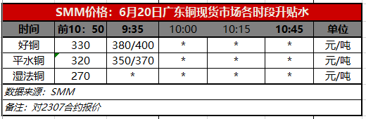 6月20日广东铜现货市场各时段升贴水(第一时段9:35)【SMM价格】