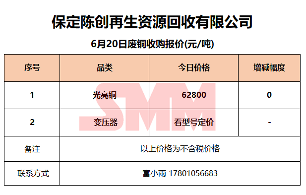 6月20日保定陈创 废金属收购报价