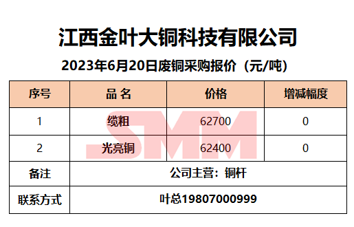 6月20日江西金叶大铜 废铜采购报价