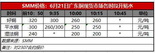 6月21日广东铜现货市场各时段升贴水(第三时段10:15)【SMM价格】