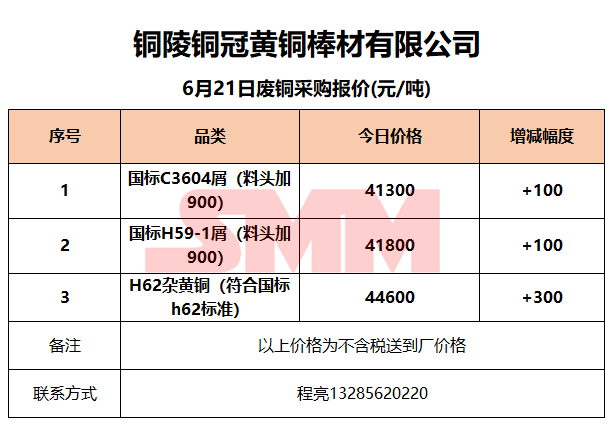 6月21日铜陵铜冠 废铜采购报价
