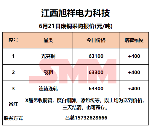 今日江西旭祥,废铜采购报价已更新,有货的朋友欢迎联系我们!