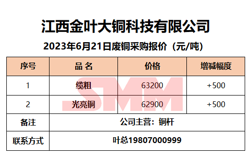6月21日江西金叶大铜 废铜采购报价