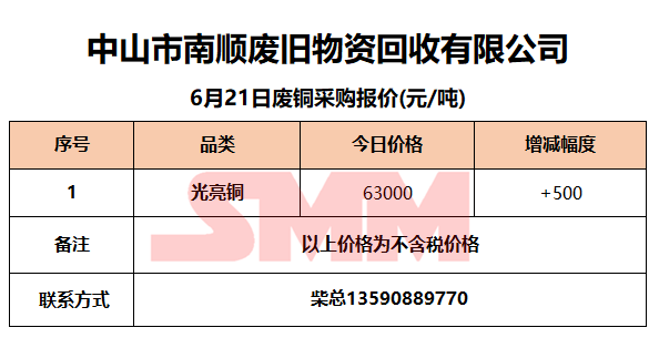 6月21日中山南顺 废铜采购报价
