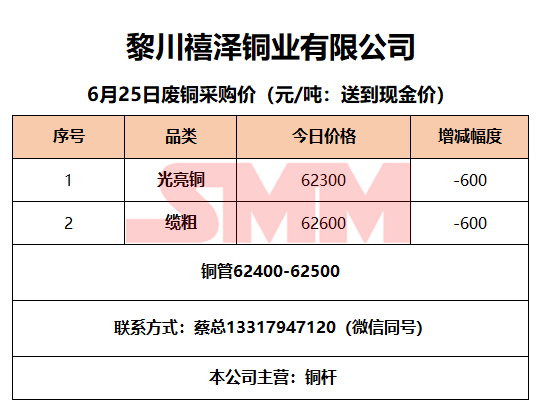 6月25日黎川禧泽铜业 废铜采购报价