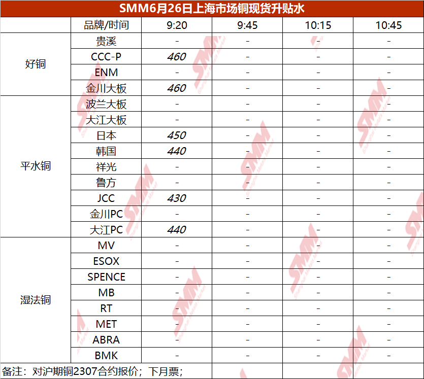 6月26日上海市场铜现货升贴水(第一时段)【SMM价格】