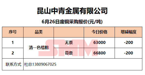 今日昆山中青金属 ,废铜采购报价已更新,有货的朋友欢迎联系我们!
