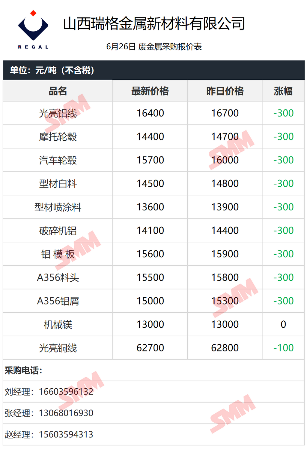 今日山西瑞格金属 废金属采购报价已更新,有货的朋友欢迎联系我们!