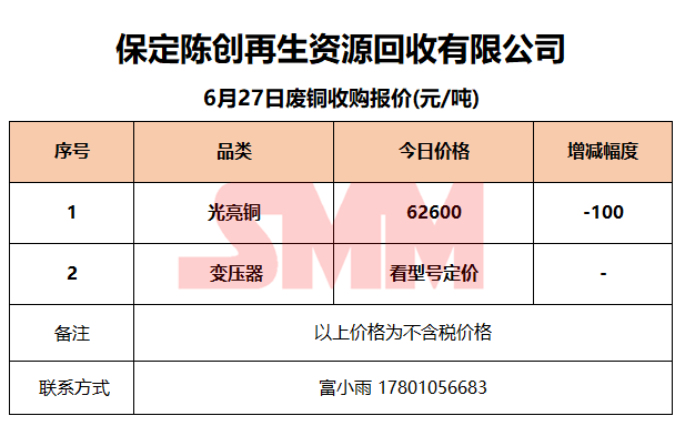 今日保定陈创再生资源,废金属收购报价已更新,有货的朋友欢迎联系我们!