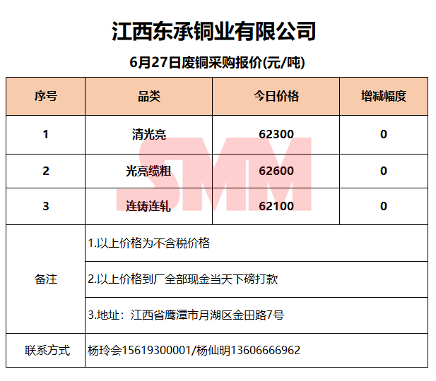 6月27日江西东承 废铜采购报价