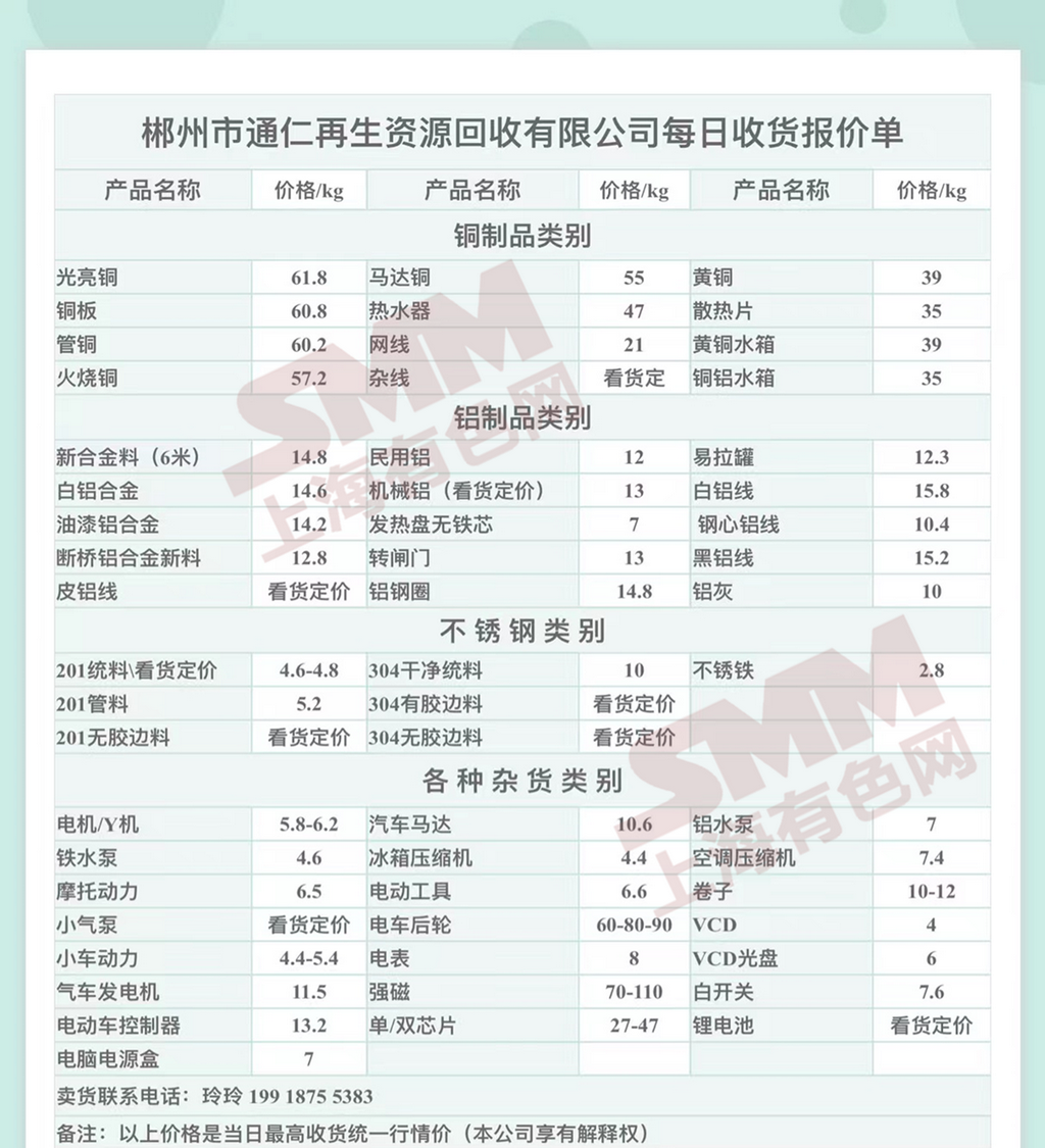 今日郴州市通仁再生资源回收有限公司 废金属收购报价已更新,有货的朋友欢迎联系我们!