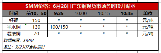 6月28日广东铜现货市场各时段升贴水(第一时段9:35)【SMM价格】