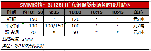 6月28日广东铜现货市场各时段升贴水(第二时段10:00)【SMM价格】