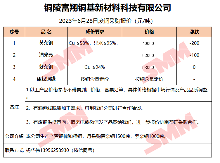 今日铜陵富翔 废铜采购报价已更新,有货的朋友欢迎联系我们!