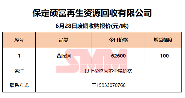 今日保定硕富 ,废铜收购报价已更新,有货的朋友欢迎联系我们!