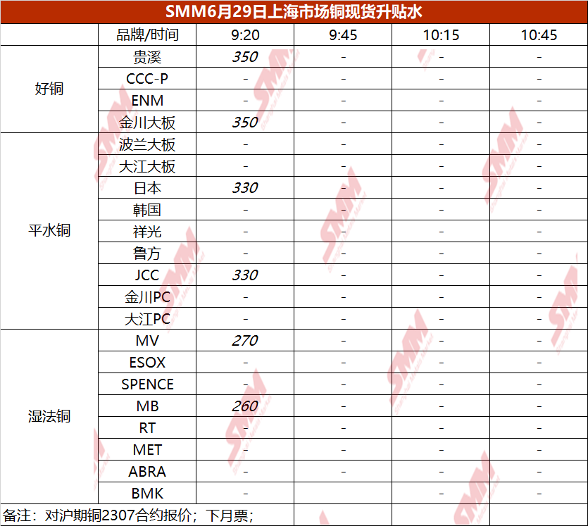 6月29日上海市场铜现货升贴水(第一时段)【SMM价格】