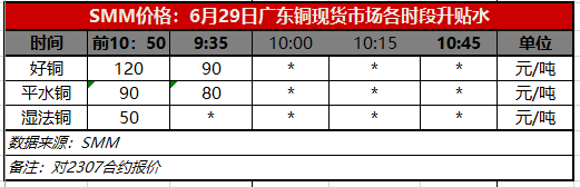 6月29日广东铜现货市场各时段升贴水(第一时段9:35)【SMM价格】