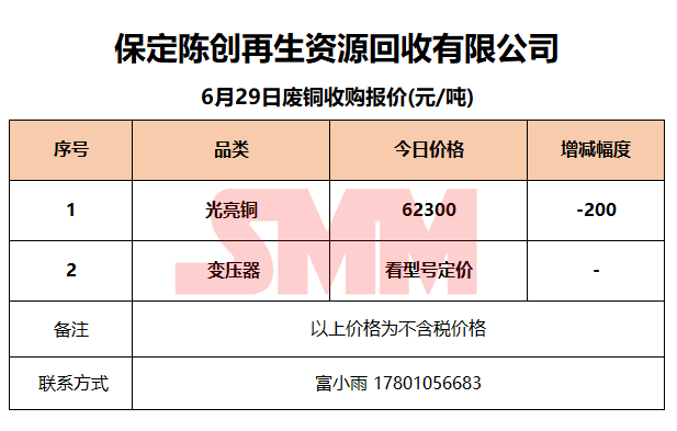 6月29日保定陈创 废金属收购报价