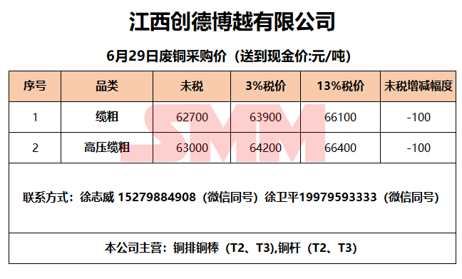 今日江西创德博越,废铜采购报价已更新,有货的朋友欢迎联系我们!