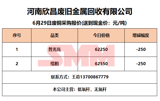 6月29日河南欣昌 废铜采购报价