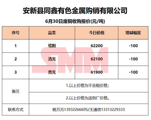 6月30日安新同鑫 废铜收购报价