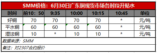 6月30日广东铜现货市场各时段升贴水(第三时段10:15)【SMM价格】