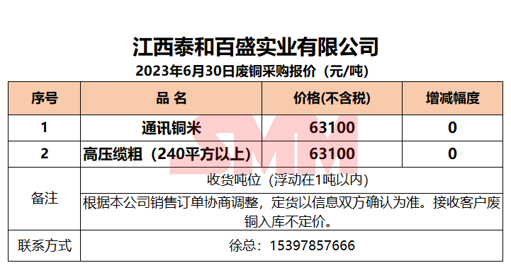 6月30日江西泰和 废铜采购报价