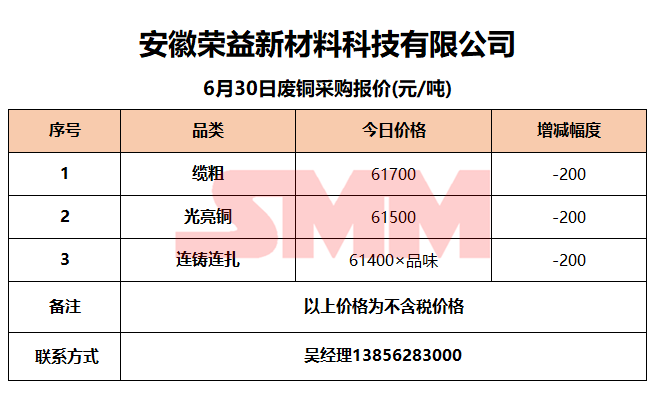 今日安徽荣益新材料,废铜采购报价已更新,有货的朋友欢迎联系我们!