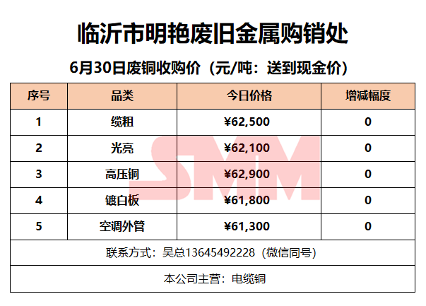 6月30日临沂明艳废旧金属 废铜收购报价