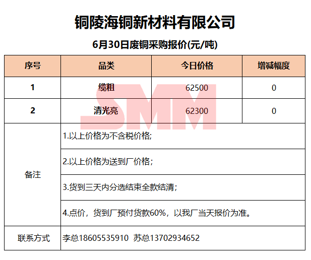 今日铜陵海铜,废铜采购报价已更新,有货的朋友欢迎联系我们!