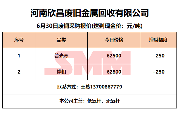 6月30日河南欣昌 废铜采购报价