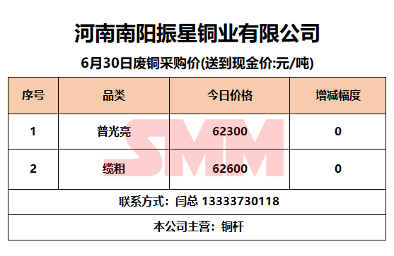 今日南阳振星,废铜采购报价已更新,有货的朋友欢迎联系我们!