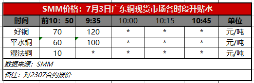 7月3日广东铜现货市场各时段升贴水(第一时段9:35)【SMM价格】