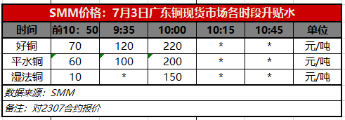 7月3日广东铜现货市场各时段升贴水(第二时段10:00)【SMM价格】